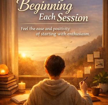 Blog Post : 109 Feel the ease and positivity of starting with enthusiasm Every learning session begins long before the first word is read or the first idea is explored. It begins in the quiet space of the mind, in the way attention gently turns toward the moment ahead. The joy of beginning does not come from excitement alone; it comes from permission—the permission to start without pressure, to arrive without expectation, and to engage without urgency. When a session begins with this kind of openness, learning feels less like a task and more like a welcoming invitation. The mind responds positively when it senses safety and ease at the very start. Instead of tightening or rushing, it relaxes into readiness. This relaxed readiness is the foundation of enthusiasm that lasts beyond the opening minutes. A joyful beginning sets an emotional tone that quietly influences the entire session, allowing clarity to unfold naturally and focus to remain steady without force.
