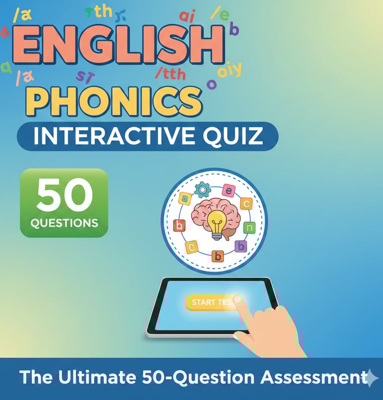 English: grammar, vocabulary, reading comprehension, and phonics.